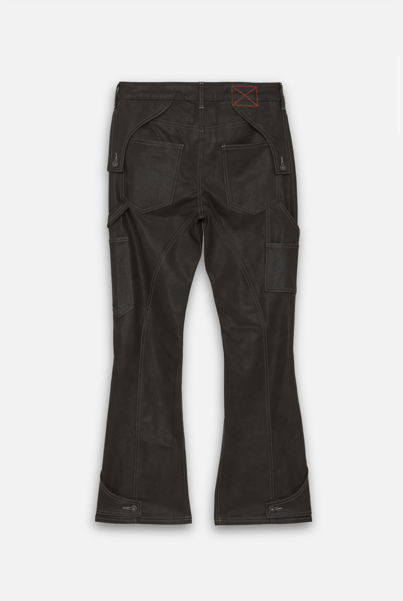 エコレザーを使用したフレアパンツの登場。